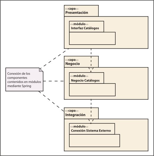 - El módulo de InterfazCatálogos contiene los componentes que permiten desplegar las pantallas asociadas al caso de uso de consulta de catálogo de productos.