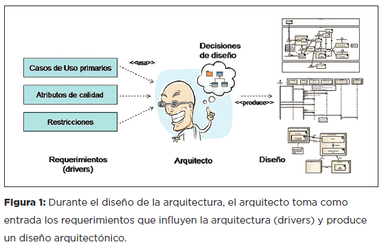Diseño del sistema. La etapa de diseño del sistema es aquella donde el arquitecto de software juega el papel principal, particularmente al momento de diseñar la arquitectura. Aquí el arquitecto debe hacer uso de todas sus habilidades técnicas con el fin de establecer una solución técnica pertinente que satisfaga, en la medida de lo posible, los requerimientos que influyen en la arquitectura (ver Figura 1. La realización del diseño requiere de muchos conocimientos técnicos.