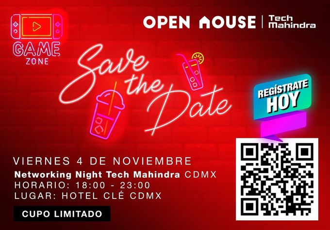 Disfruta de la Networking Night de Tech Mahindra donde podrás ir a convivir y disfrutar de diversas actividades como jugar videojuegos, convivir, participar en sus rifas, ganar premios, entre más. Este es su primer evento en CDMX para conocer a las personas que son parte de la comunidad en la industria TI como lo son ellos.