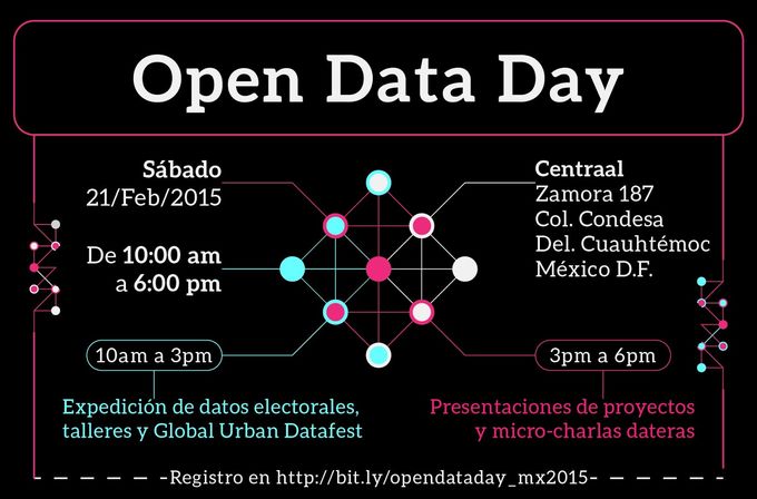Hackers cívicos, visualizadorxs y periodistas! Les invitamos a celebrar el Open Data Day en la Ciudad de México con una serie de actividades: Expedición de Datos Electorales, talleres, Global Urban Datafest y unas carnes asadas el sábado 21 de febrero a las 10:00 en Centraal. La entrada es libre pero requiere registro previo.