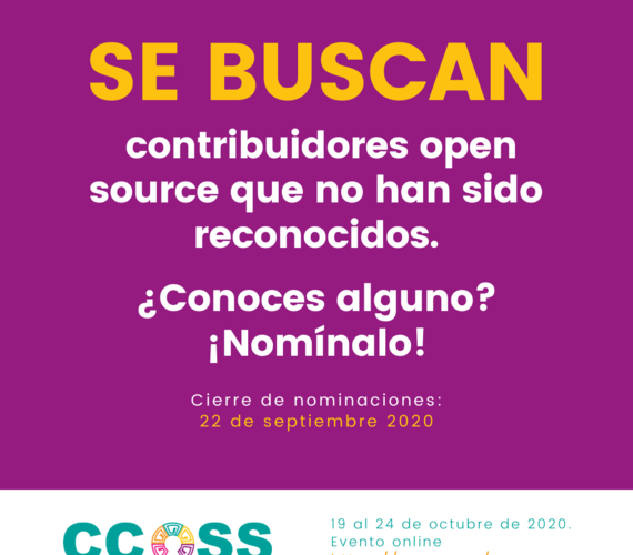 En esta edición de la Cumbre de Contribuidores de Open Source Software (CCOSS) queremos reconocer a miembros de la comunidad que han contribuido a proyectos de código abierto o que han ayudado a que más personas hagan sus primeras contribuciones.