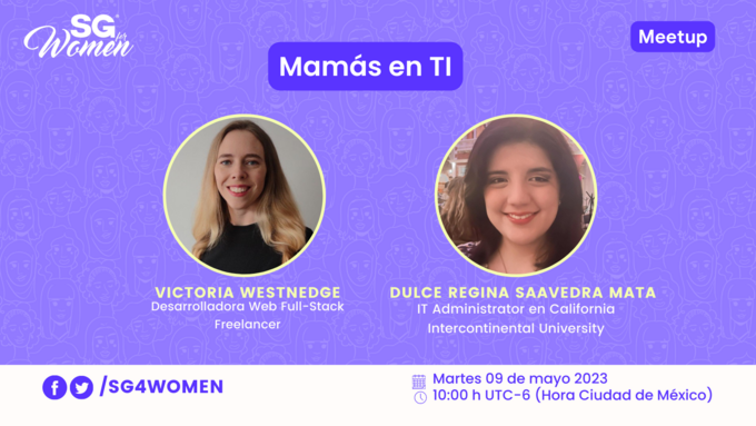 Acompáñanos este martes 09 de mayo en el meetup de #SG4W donde Dulce Regina Saavedra Mata y Victoria Westnedge nos compartirán sus experiencias sobre cómo han llevado su etapa de maternidad y a la vez seguir con su carrera profesional como desarrolladoras.⚡