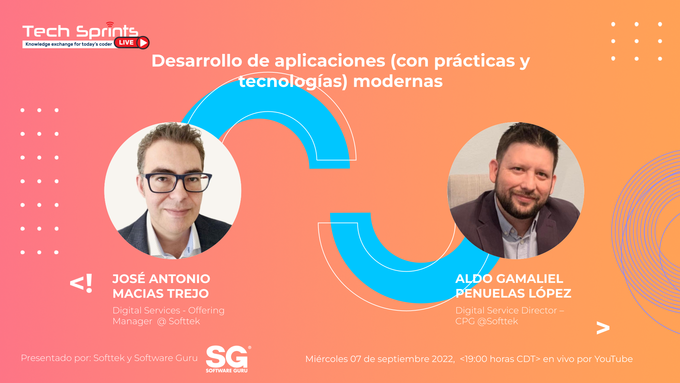En el cuarto episodio de Tech Sprints Live platicaremos sobre "desarrollo de aplicaciones modernas", un término que puede parecer genérico pero en realidad es una categoría de servicios de TI bien acotada, enfocada en la entrega acelerada de productos digitales que utilizan tecnologías modernas para proveer experiencias de usuario altamente diferenciadas.
