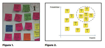 c. Pedir a cada miembro o grupo que peguen los riesgos en una pizarra y los expliquen (ver figura 1). A través de este ejercicio obtendremos una mayor participación, una mejor cobertura y una comprensión compartida de las preocupaciones de todos.