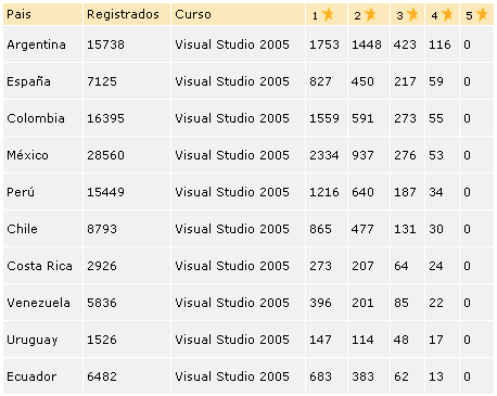 Aunque estas estadísticas son específicas a este programa (el cual solo se refiere a tecnologías .NET), aun así sirven para darnos una buena idea respecto a la cantidad y especializacion de profesionistas de software en países de habla hispana.