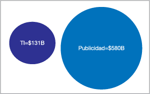 Hoy la publicidad en línea representa sólo 5% del mercado total; si pudiéramos crecer en 2007 a 8%, se estarían captando 15 nuevos billones de dólares. Querámoslo o no, esto traerá consecuencias inmediatas:
