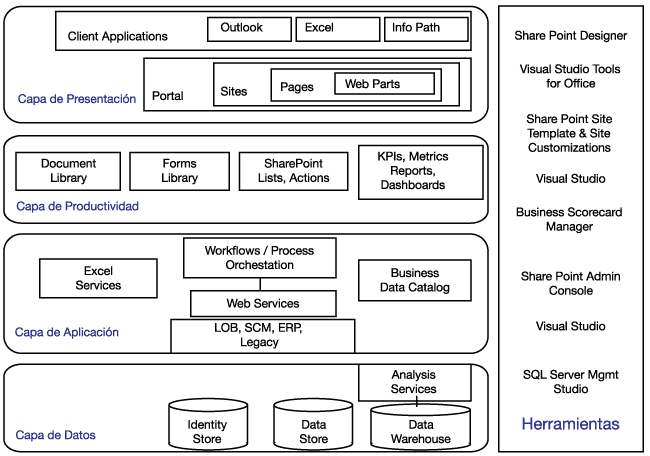 •Inteligencia de negocios: Excel Services Web API, Excel Services Calculation Engine, Filter Web Parts, Data Connection Library.