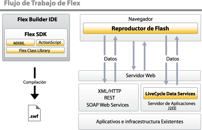 Figura 3. Flujo de trabajo para aplicaciones Flex