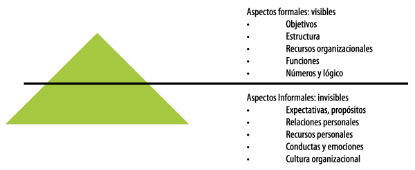 La mayoría de las organizaciones solo dan importancia a los aspectos formales y visibles, olvidando los aspectos invisibles, que representan el 90% de la pirámide.