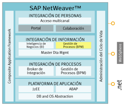 Recordemos que NetWeaver es la plataforma sobre la que se ejecutan las aplicaciones de SAP. Adicionalmente, provee servicios para integración entre aplicaciones e interacción con componentes externos. Así que en resumen, NetWeaver es el middleware de integración y ejecución para las aplicaciones de SAP.
