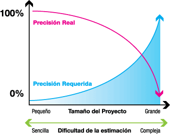 Un problema inherente a la estimación es que conforme aumenta el tamaño del proyecto, disminuye la precisión de los resultados obtenidos (ver gráfica 1).