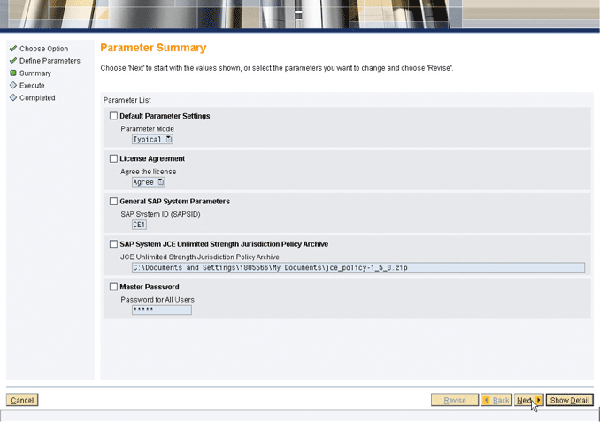 Así como la mayor parte de las soluciones y productos SAP, la instalación empieza con un Wizard, en el que usted deberá entrar con todos los parámetros necesarios para la instalación. Solamente después de la colecta de todas las informaciones necesarias y la revisión de los parámetros es que la instalación efectivamente empezará. A partir de esto todo se realiza automáticamente.