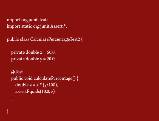 Con JUnit 4 se eliminan las convenciones de nombrado y el uso de reflection para localizar los métodos de prueba. Ahora, para señalar un método de prueba lo anotaremos con @Test. No será necesario heredar de la clase TestCase para hacer uso de los métodos assertXXX() y podremos hacer uso de ellos mediante la utilización de importaciones estáticas, característica proporcionada por Java 5. Ejemplo: