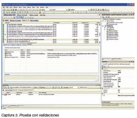 entre todas las reglas de validación. Cualquier web test puede utilizarse durante pruebas de carga (load testing). Esta propiedad determina cuando se incluirán en un escenario de pruebas de carga. Como un bono, la herramienta de pruebas de carga (Load Testing) es incluida como parte del paquete de Test Edition.