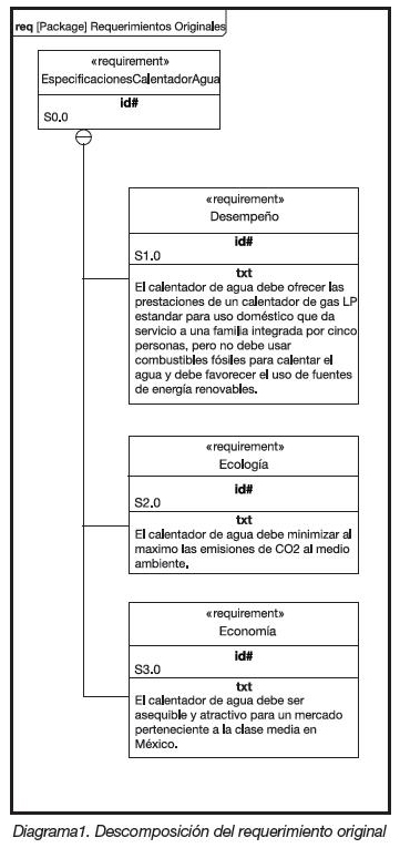 Como ingenieros sabemos que cualquier producto derivado del proceso de diseño en ingeniería inicia de una declaración, por parte de un cliente, para resolver ya sea un problema o una necesidad. También sabemos que existen varias formas de documentar los requisitos que se tienen que satisfacer y/o que limitan el número de soluciones posibles para la problemática declarada, las cuales van desde las maneras totalmente informales y orientadas a la documentación hasta los lenguajes y métodos formales que pueden representar los requisitos de forma gráfica. El diagrama de requerimientos definido en SysML (Systems Modeling Language) tiene la ventaja de haber sido creado ex profesamente para documentar los requerimientos y sus relaciones en un formato gráfico, sin estar vinculado a una metodología en particular.En este artículo veremos los principales elementos que conforman al diagrama de requisitos