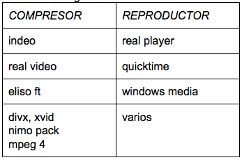 Cada uno de estos formatos requieren de codecs, que son generalmente software que se encarga de almacenar, guardar y extraer una señal de video utilizando algoritmos de compresión-descompresión, entre los más conocidos tenemos los siguientes: