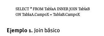Antes de proseguir, recordemos la estructura básica de una sentencia JOIN. La sentencia del ejemplo 1 nos permite obtener todos los datos de la TablaA, combinados con los datos de la TablaB, unidos por medio del CampoX, el cual se encuentra disponible en ambas tablas. En esta sentencia hacemos un INNER JOIN, que es el tipo más común.