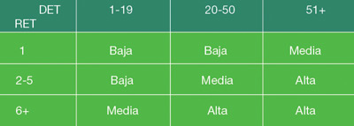 Tabla 1. Tabla para determinar complejidad de funciones de datos