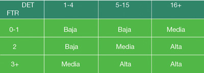 Con el número de DETs y FTRs y además el tipo de cada función transaccional, se consultará en las siguientes tablas la complejidad: