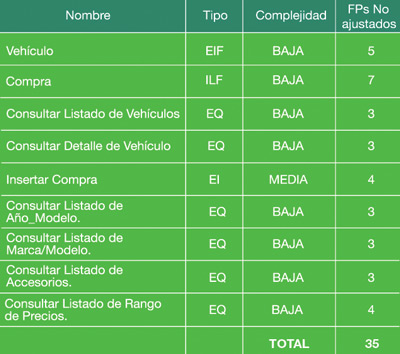 Tabla 5. Puntos de función correspondientes a funciones transaccionales