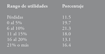 Utilidades La mediana del rango de utilidades de las empresas participantes en el estudio, en los últimos dos años, se encuentra entre el 6 y el 10%.