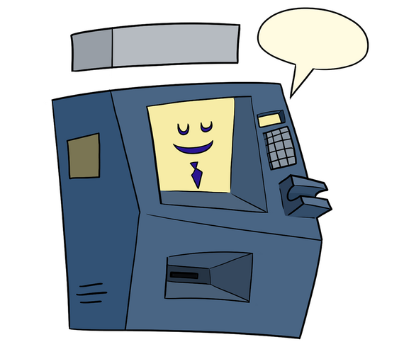 El cajero lo saludará. Dirá “por favor” y “gracias” y, lo más seguro es que termine con un “Gracias, fue un placer atenderle”. Puede uno imaginar la sonrisa en el rostro del cajero. Imagino al personaje usando un traje que combina con el banco, tal vez una corbata con el logotipo del mismo. Cada vez que veo ese mensaje de “Fue un placer” me imagino: ¿Cómo podría una máquina estar gustosa de haber atendido a alguien?